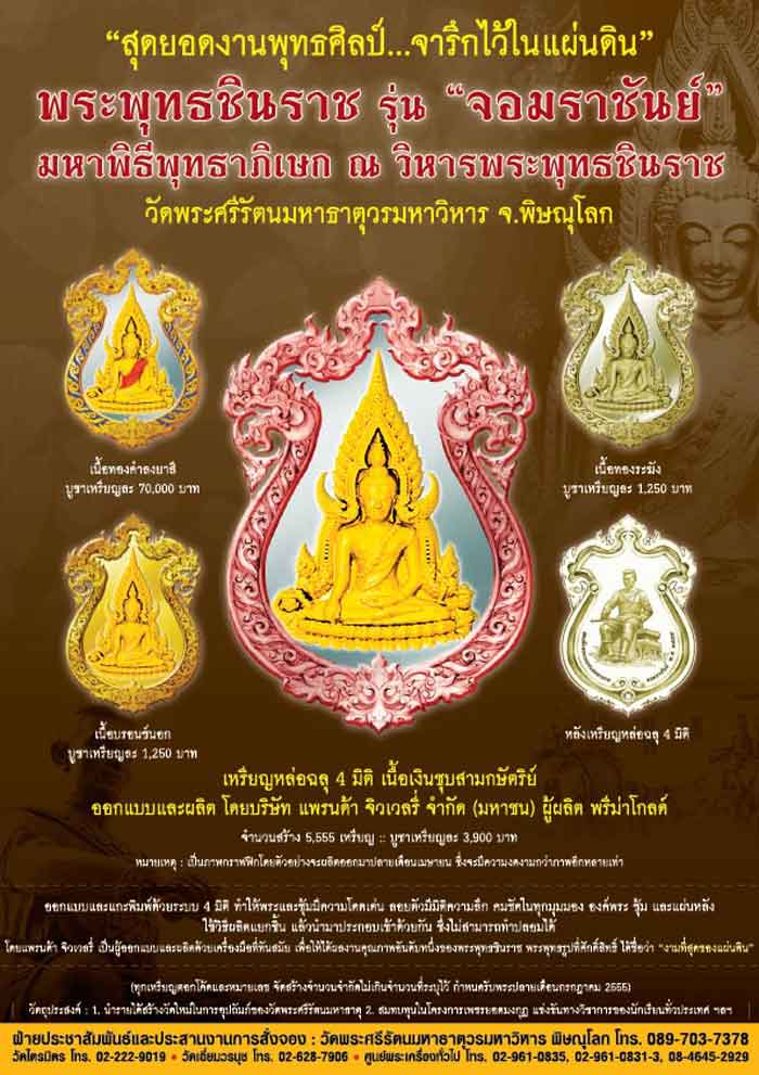 | หัวข้อกระทู้ : +++ เปิดจอง พระพุทธชินราช รุ่น "จอมราชันย์ ราคาจองทุกรายการครับ +++ |