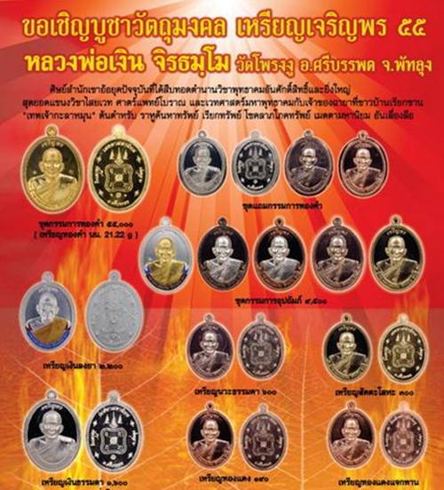 6.สัตตะโลหะ สร้าง 2,555 เหรียญ ราคา 300.- มียอด 10 องค์