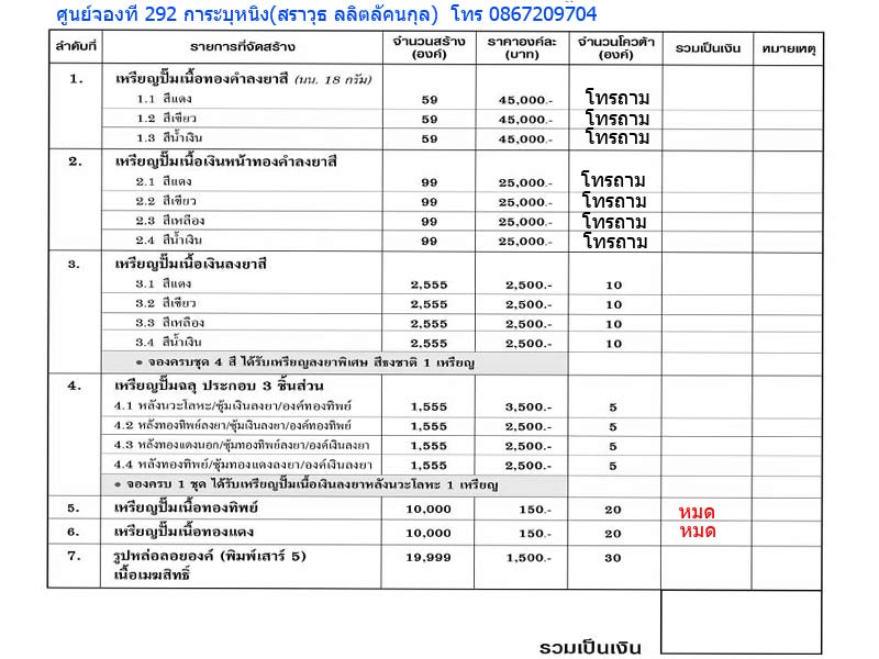 ลูกค้านอกเว็บโทรมาสั่งจองได้ครับ