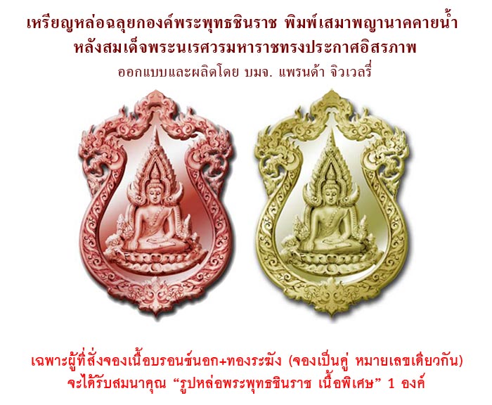 เพราะพี่อุ๊ กรุงสยาม เตรียมรายการพิเศษสุดๆ ให้กับผู้ที่สั่งจอง "เหรียญหล่อฉลุยกองค์พระพุทธชินราช พิมพ์เสมาพญานาคคายน้ำ หลังสมเด็จพระนเรศวรมหาราชทรงประกาศอิสรภาพ เนื้อบรอนซ์นอก และ เนื้อทองระฆัง" คือ จองเป็นคู่พร้อมกันก็จะได้รับ...