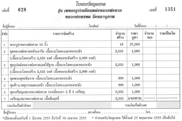 2.รายการที่ 3 ชุดหลวงพ่อทวดเลขใต้ฐานเนื้อนวะโลหะและเนื้อทองระฆังจอง 1,000 บาท มี 20 คู่