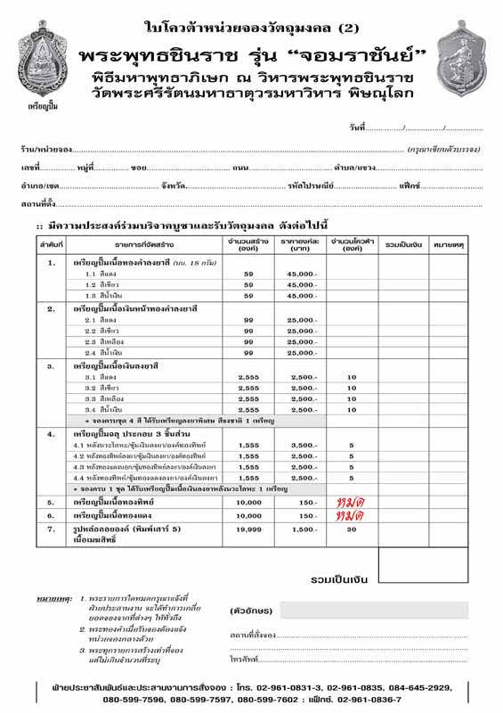 ขออนุญาติแนะนำตัวนะครับ ได้รับอนุญาติให้เิปิดรับจองพระพุทธชินราช รุ่น " จอมราชันย์ " สามารถตรวจสอบได้ครับ