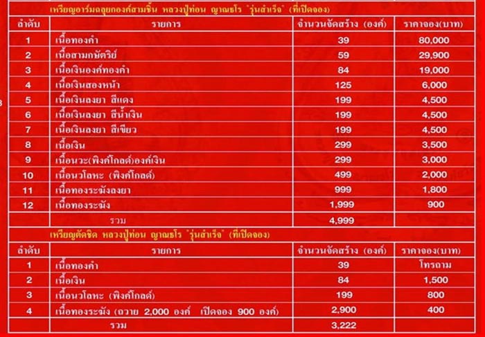 4. เนื้อทองระฆัง (เปิดจองเพียง 900 องค์) ราคาจอง 400 บาท ... มี 3 เหรียญ