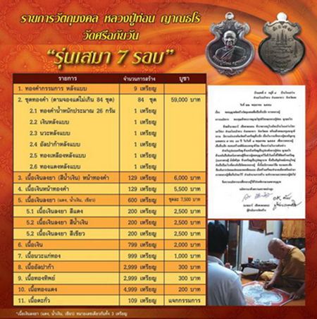 7.เนื้อนวะแก่ทอง สร้าง 999 องค์ ราคา 1,000.- มียอด 4 องค์