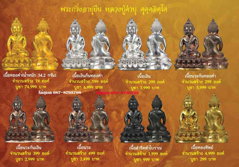 1.พระกริ่งอายุยืน เนื้อเมฆสิทธิ์นำฤกษ์ก้นทองคำ สร้าง 199 องค์ ราคา 5000 บาท