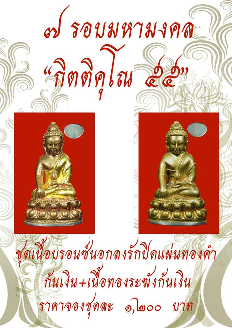 1.8 เนื้อนวโลหะลงรักปิดแผ่นทองคำก้นเงินองค์ละ 2,000 บาท มี 10 องค์