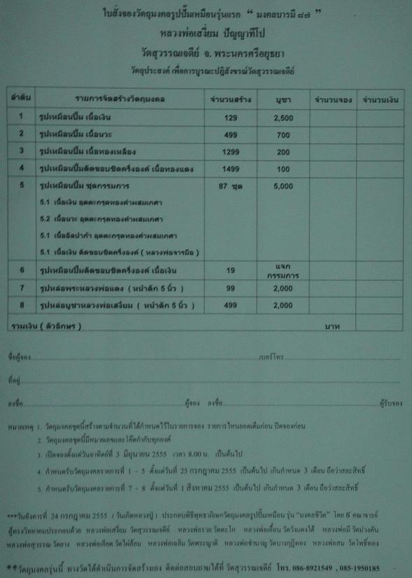 ทุกท่านที่ได้สิทธิ์การจองวัตถุมงคล ขอให้โอนเงินค่าวัตถุมงคลเข้าบัีญชีวัดสุวรรณเจดีย์