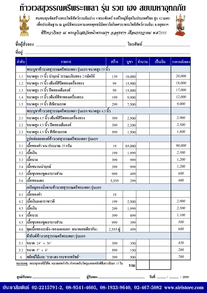 1. ชุดใหญ่ 1 ชุดมีครบทุกรายการตั้งแต่พระบูชา 19 นิ้วลงมา (เว้นรายการทองคำ) เรียกว่าจองชุดนี้แล้วจบครับ