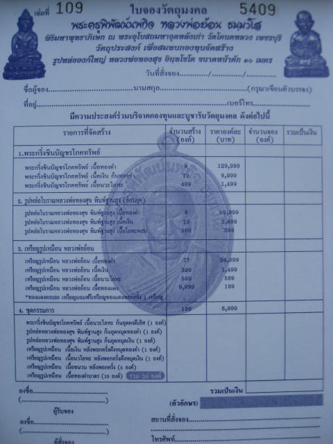 -วัตถุประสงค์ : เพื่อสมทบทุนร่วมจัดสร้างรูปหล่อองค์ใหญ่ หลวงพ่อทองศุข อนฺทโชโต ขนาดหน้าตัก 9.9 เมตร...