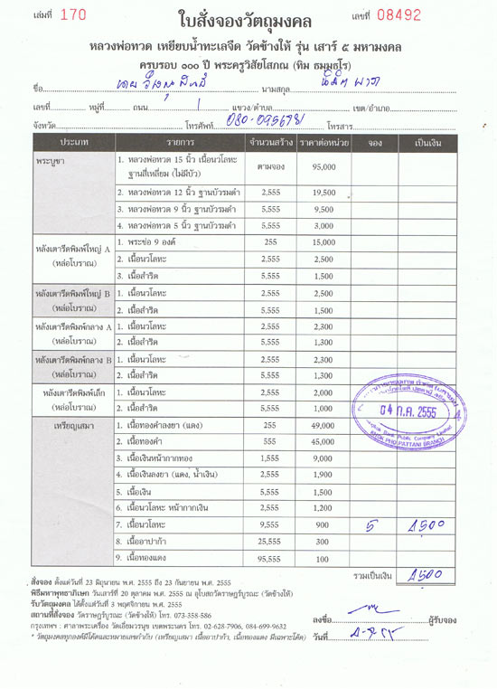 เบอร์โทรศัพท์บ้าน : 073-331776 มือถือ 080-0956781