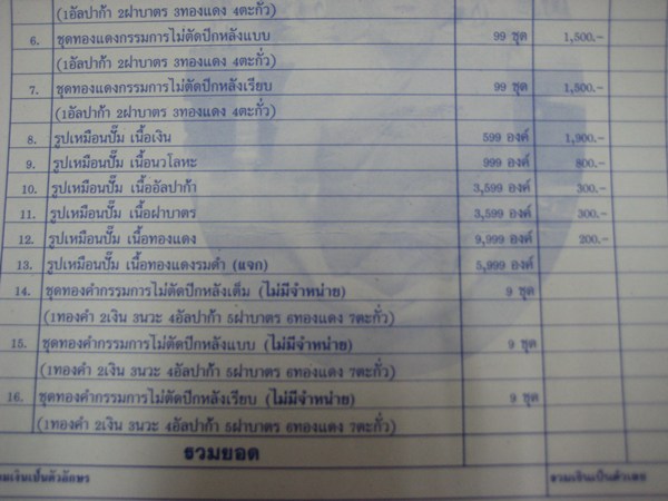 1. รูปเหมือนปั้ม เนื้ออัลปาก้า 1 องค์ + เนื้อฝาบาตร 1 องค์ + เนื้อทองแดง 2 องค์ รวม 4 องค์ ราคา 1000 บาท....มีจำนวน 10 ชุด