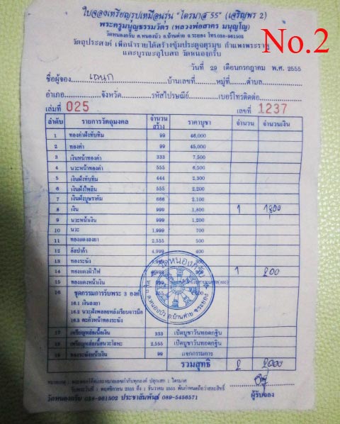 ใบจองเหรียญรูปเหมือน รุ่น ไตรมาส 55 เจริญพร 2 หลวงพ่อสาคร วัดหนองกรับ