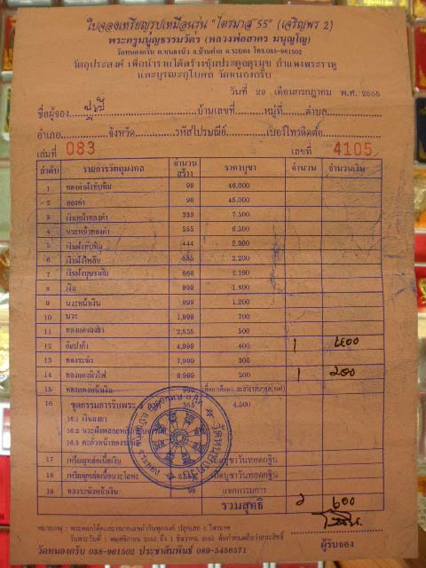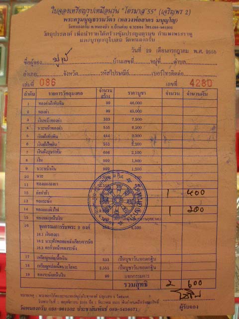 แจ้งด้วยว่าให้จัดส่งเป็นใบจองหรือเป็นพระ