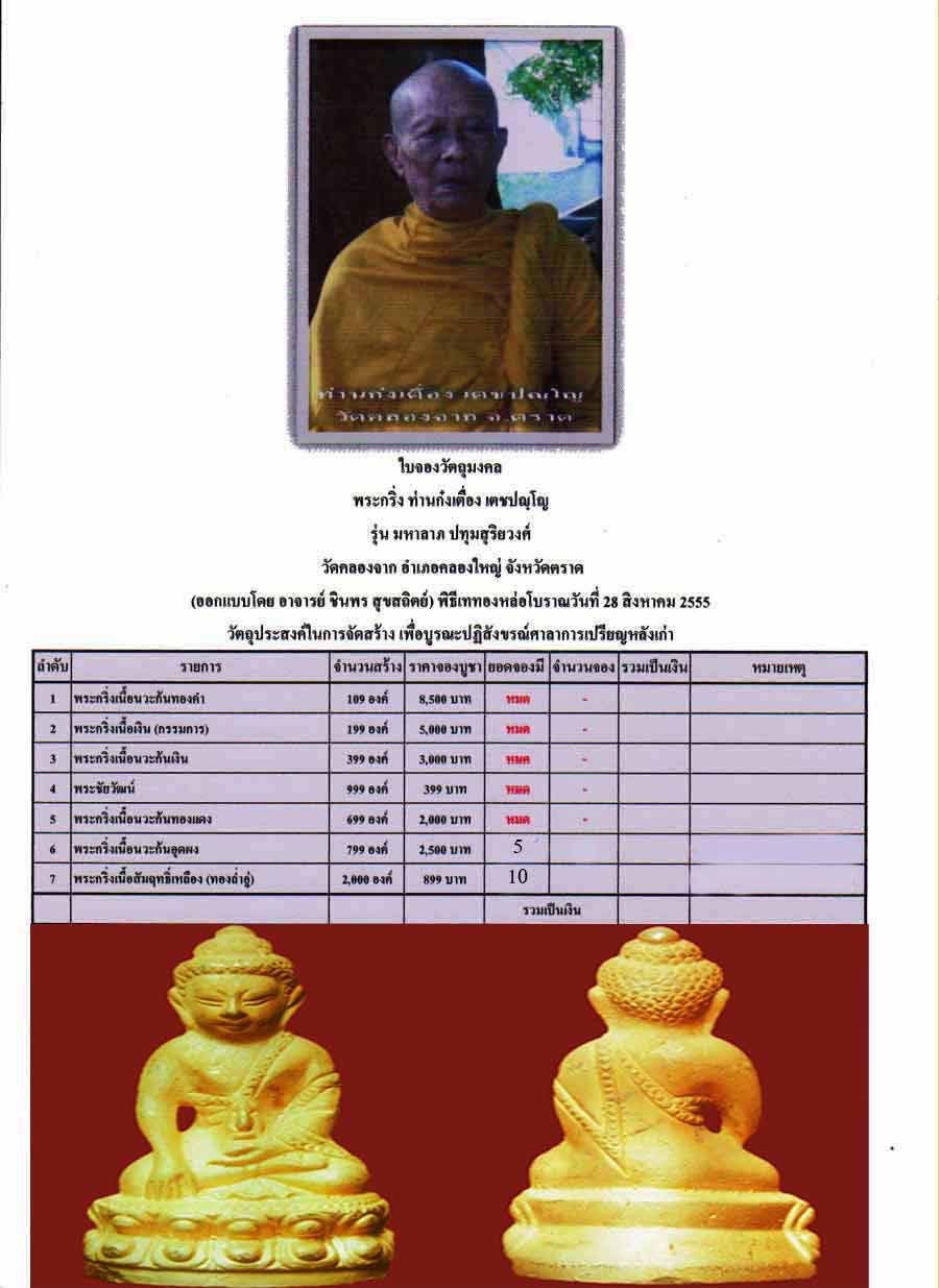หัวข้อกระทู้ : "พระกริ่งท่านก๋งเตื่อง วัดคลองจาก จ.ตราด รุ่นมหาลาภ ปทุมสุริยวงศ์"โดย อ.ชินพร สุขสถิตย์