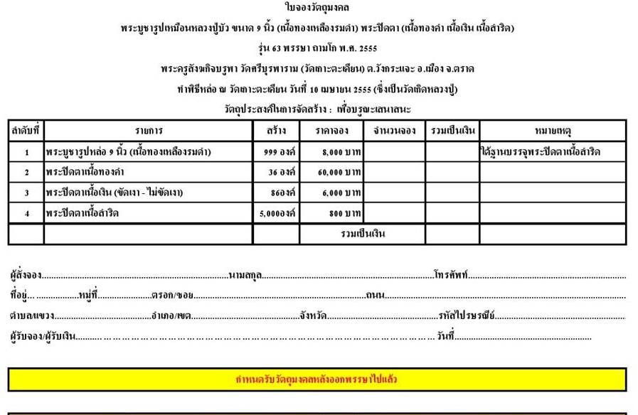 ราคาชุดละ 3,000 บาท พร้อมจัดส่งวัตถุมงคลและใบจองให้ครับ