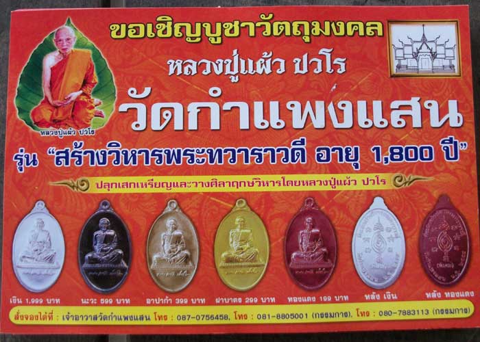 ขอเชิญบูชาวัตถุมงคล "หลวงปู่แผ้ว ปวโร" ออกวัดกำแพงแสน รุ่นสร้างวิหารพระทวาราวดี อายุ 1,800 ปี ปลุกเสกเหรียญและวางศิลาฤกษ์วิหารโดยหลวงปู่แผ้ว ปวโร