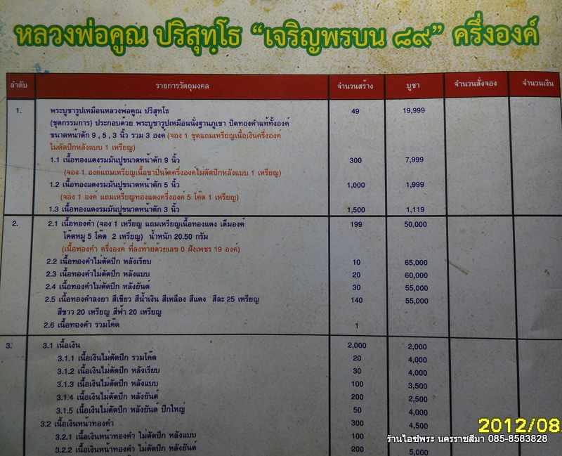 มี 1 รายการ หลวงพ่อคูณครึ่งองค์เจริญพรเนื้อทองคำ ราคา 75,000 บาท