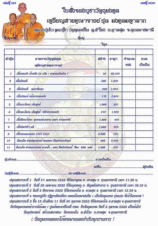 ปลุกเสกวาระแรก วันที่ 27 เมษายน 2555 ที่วัดนาอุดม