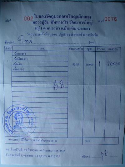 แจ้งด้วยว่าให้จัดส่งเป็นใบจองหรือเป็นพระ