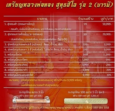 มียอดจองเหรียญหลวงพ่อทอง มาแบ่งยกชุดไม่แพงครับถูกกว่าจอง เนื้อทองทิพย์ 10 เหรียญ เนื้ออัลปาก้า 10 เหรียญ และเนื้อทองแดงผิวไฟ 10 เหรียญมาขายยกชุดที่ 7000 บาท ครับ ของออกดำเนินการจัดส่งให้ด่วนเลยครับ ถูกว่านี้ไม่มีแล้วครับ ถูกกว่าราคาจองเสียอีก