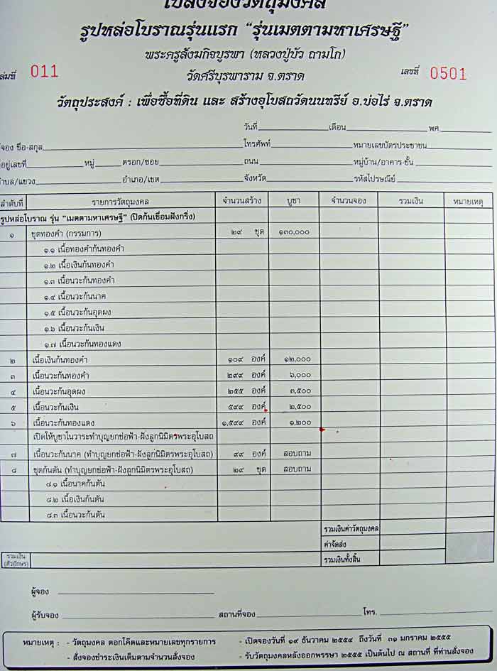 พร้อมค่าจัดส่งใบจองและวัตถุมงลทั่วประเทศฟรี