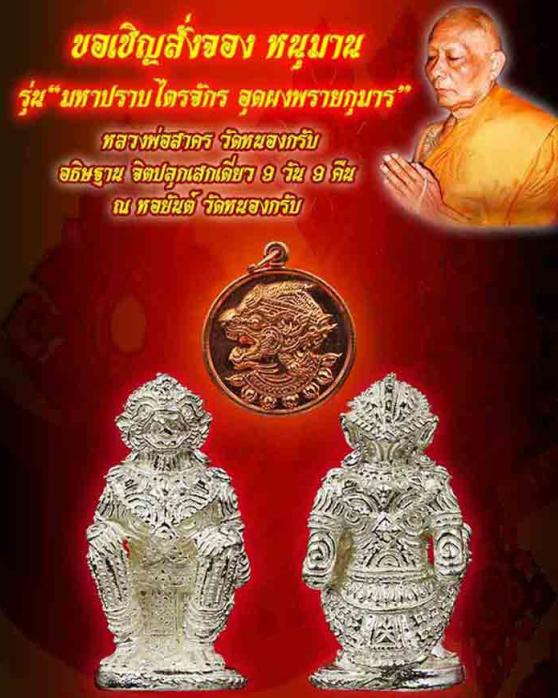 หนุมานมหาปราบไตรจักร มวลสารเข้มขลัง ชัดเจน หลวงพ่อสาครปลุกเสกพิธีแช่น้ำว่านให้อีก 9 วัน 9 คืน สุดยอดครับ สำหรับรูปหล่อลอยองค์เห็นองค์จริงแล้วทุกเนื้อ สวยงาม เข้มขลังมากครับ แบ่งกันไปบูชาครับ ราคาเบาๆ จองจากศูนย์จองโดยตรง ท่านได้รับพระแน่นอน