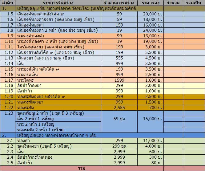 จำนวนเงินรวม 12,800 บาท ราคารวมค่าจัดส่งแล้วครับ (ไม่แยกรายการครับ) ไม่มีใบจองครับ แต่ผมการันตีได้รับพระแน่นอนครับ สนใจปิดในกระทู้ได้เลยครับ โอนเงินไม่เกิน 1 วันนับจากวันที่โพสต์จองครับ ขอบคุณมากครับ
