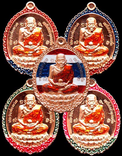 ทองแดงลงยา (แดง เขียว น้ำเงิน ชมพู ลายธงชาติ) สีละ ... 555 เหรียญ