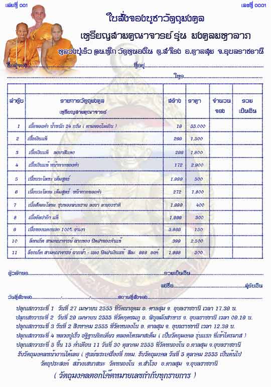 ปลุกเสกวาระแรก วันที่ 27 เมษายน 2555 ที่วัดนาอุดม