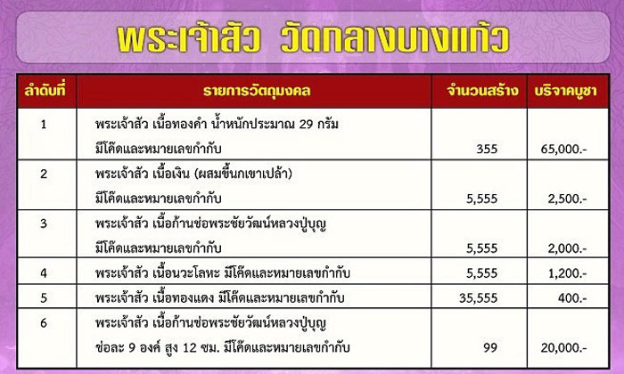 พระเจ้าสัว เนื้อก้านช่อพระชัยวัฒน์หลวงปู่บุญ มีแบ่ง 5 เหรียญๆ ละ 3,000 บาท