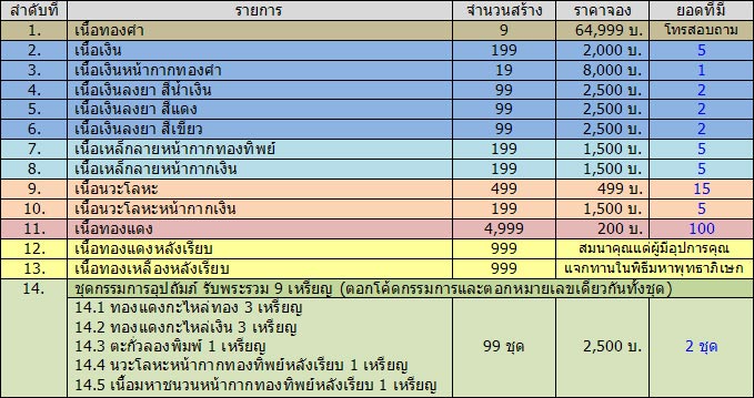 ราคาจองทุกรายการ จองได้ตามใบรายการที่ลงไว้