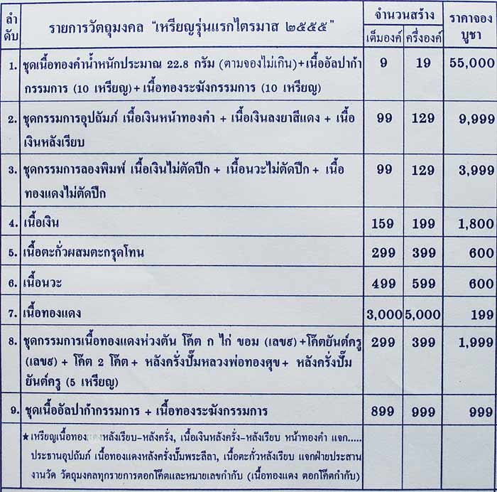 รายการที่เปิดจองมีดังนี้ครับ