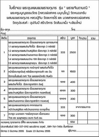 แจ้งชื่อที่อยู่ที่จะให้ส่งพระด้วยครับ |