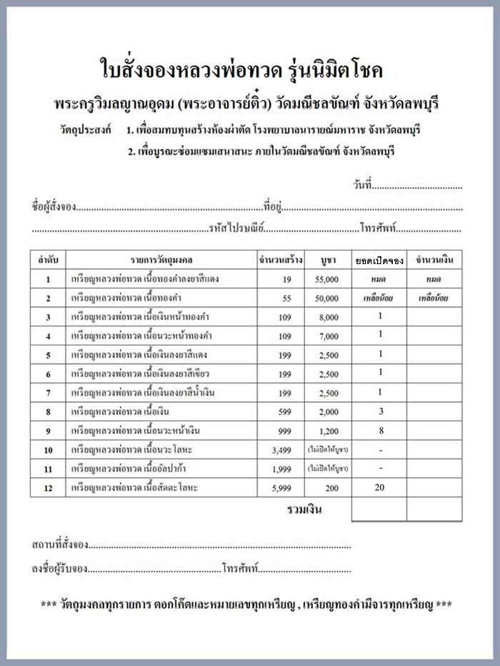 | หัวข้อกระทู้ : >>เปิดจอง เหรียญหลวงพ่อทวด รุ่น "นิมิตโชค" พระอาจารย์ติ๋ว วัดมณีชลขัณฑ์ จ.ลพบุรี< |