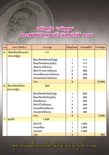 ชุดเล็กมี 5 ชุดๆละ 700 บาท