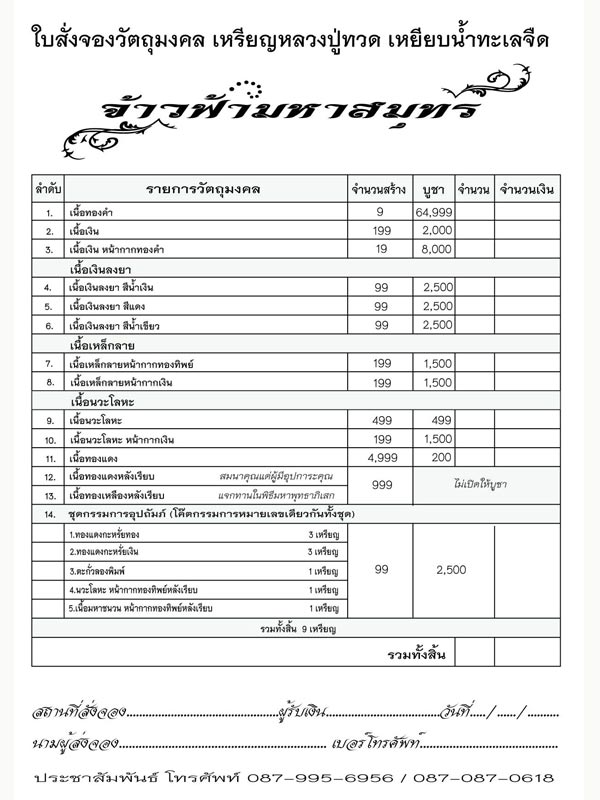 ยอดที่เปิดจอง ได้มาไม่เยอะ แบ่งๆกันไปครับ ราคาวัด+ค่าจัดส่ง 100 บาท ทั่วไทยครับ
