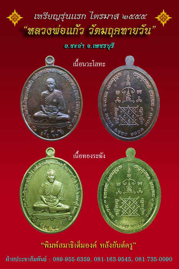 รายการสั่งจอง "เหรียญรุ่นแรก หลวงพ่อแก้ว ไตรมาส ๒๕๕๕" จ.เพชรบุรี