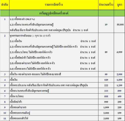 1. เนื้อพระธานหลังเรียบ มีจาร เหรียญละ 1500 บาท มี 1 เหรียญ