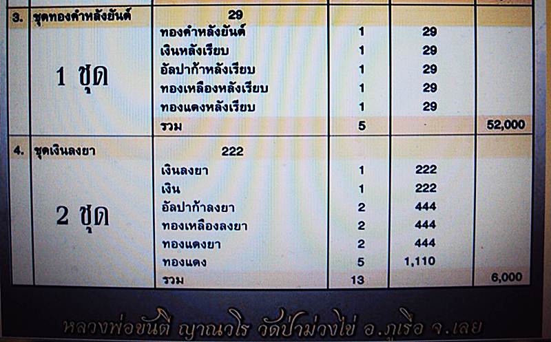 1. ชุดทองคำหลังยันต์เต็มชุด = 52,000 บาท