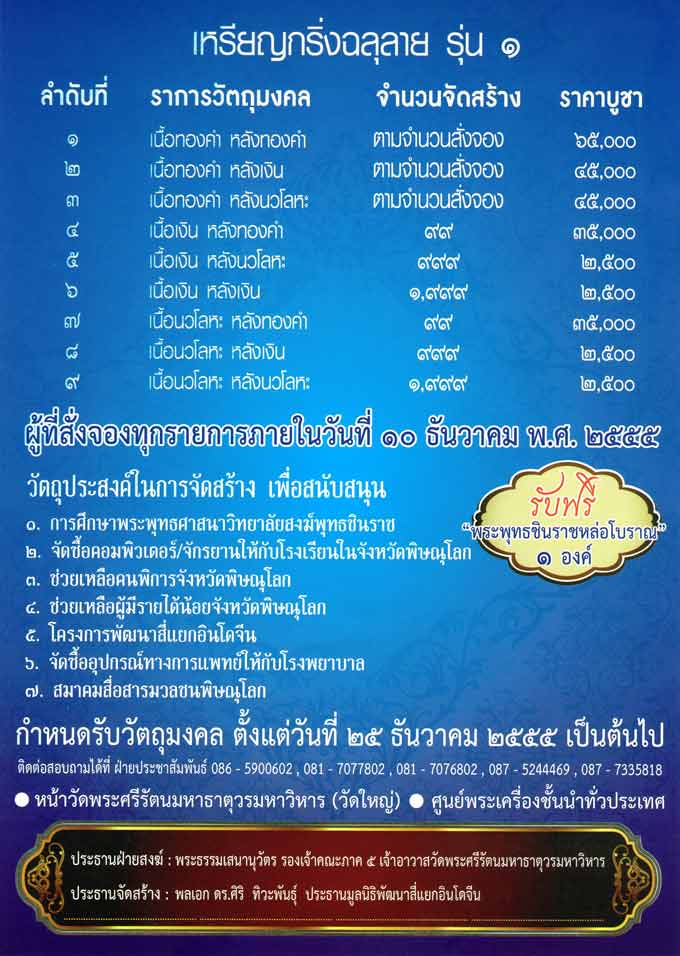 JC Amulet เปิดจอง พระพุทธชินราช รุ่นเจริญพร ๒๕๕๕ ในราคาจอง + ค่าส่ง