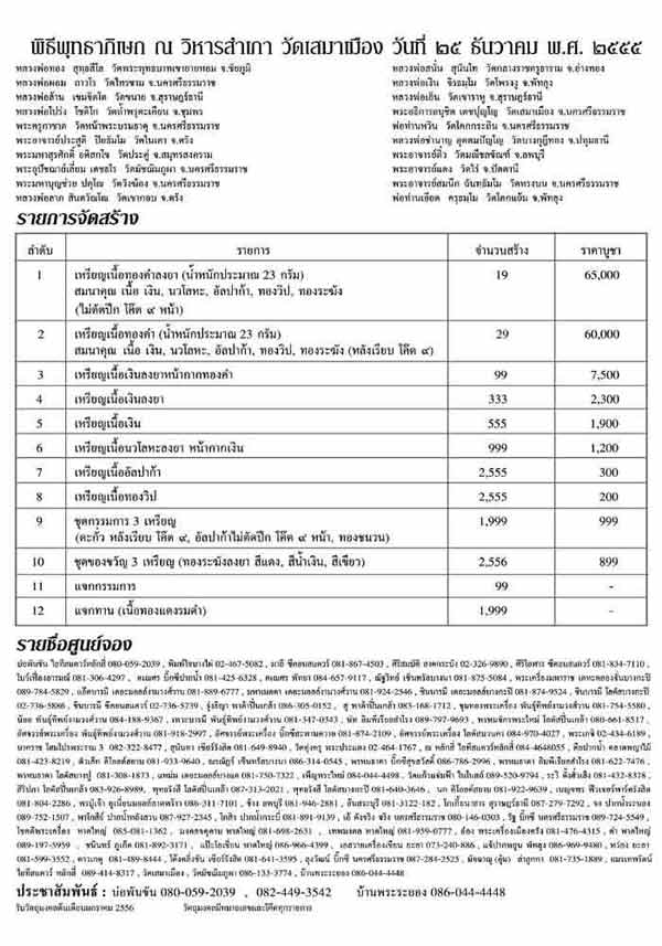 1.ชุดกรรมการ 3 เหรียญ (ตะกั่วหลังเรียบ.อัลปาก้าไม่ตัดปีก,ทองชนวน)มียอด 10 ชุด ชุดละ 1,000 บาท