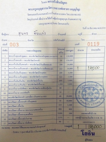 ใบจอง พระกริ่งเนื้อนวะก้นทองคำ + พระชัยวัฒน์เนื้อนวะเดือยทองคำ หลวงพ่อสาคร วัดหนองกรับ