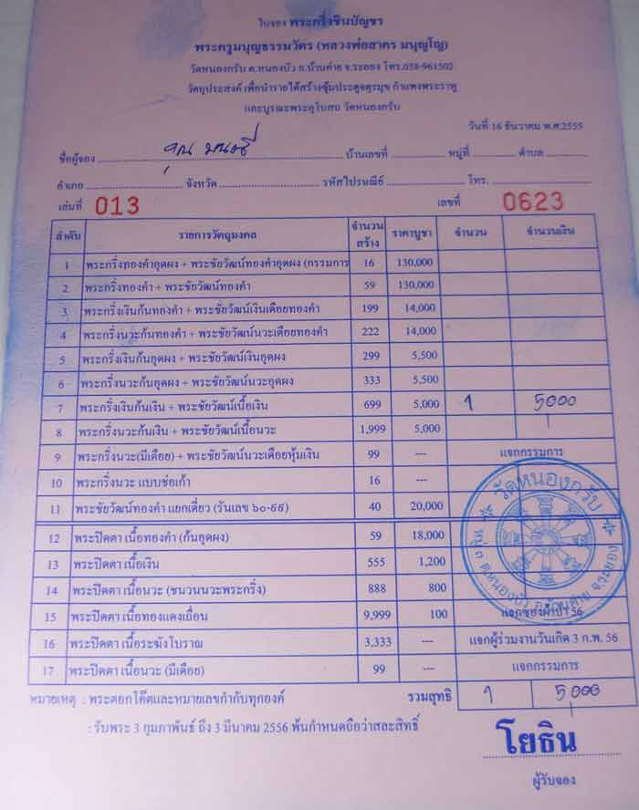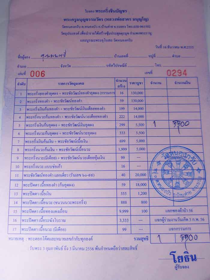 พระกริ่งเงินก้นอุดผง + พระชัยวัฒน์เงินอุดผง (ใบจองวัด)
