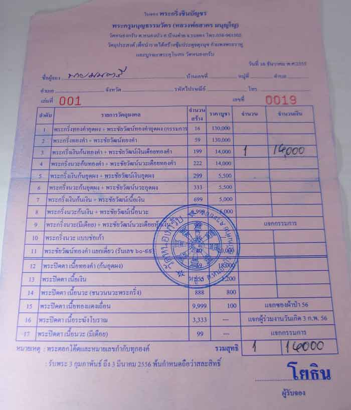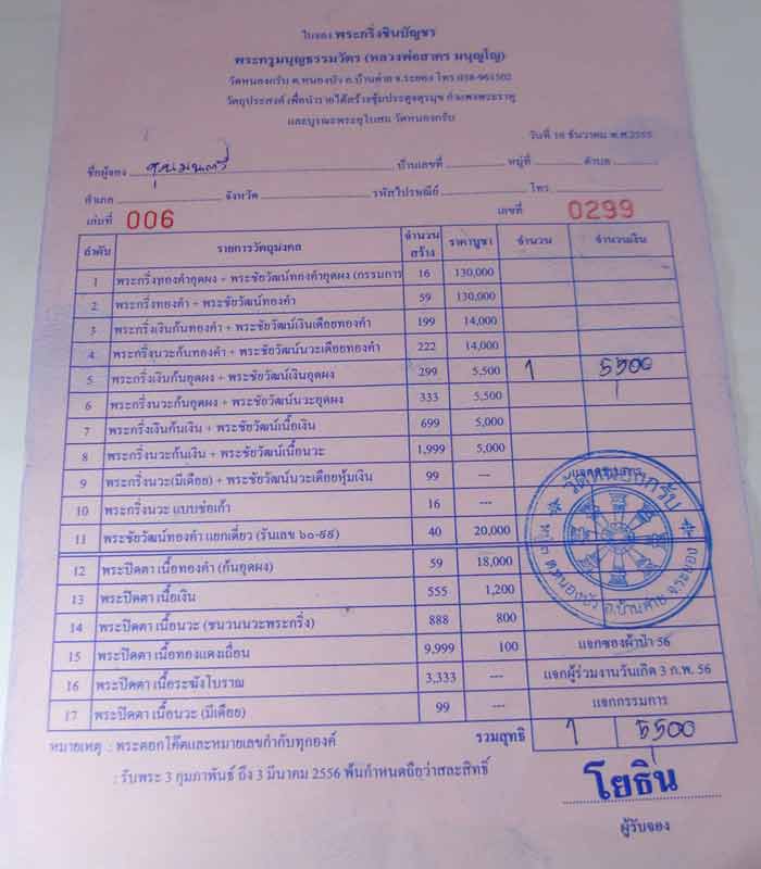 พระกริ่งเงินก้นทองคำ + พระชัยวัฒน์เดือยทองคำ (ใบจองวัด)