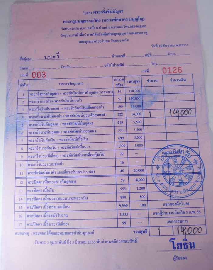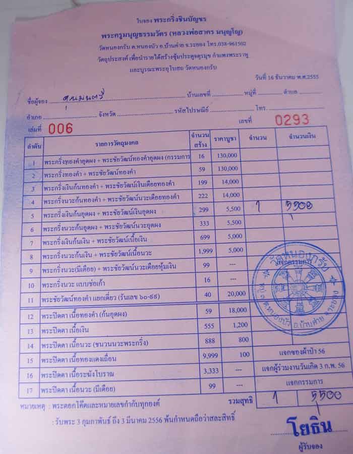 พระกริ่งนวะก้นทองคำ + พระชัยวัฒน์นวะเดือยทองคำ (ใบจองวัด)