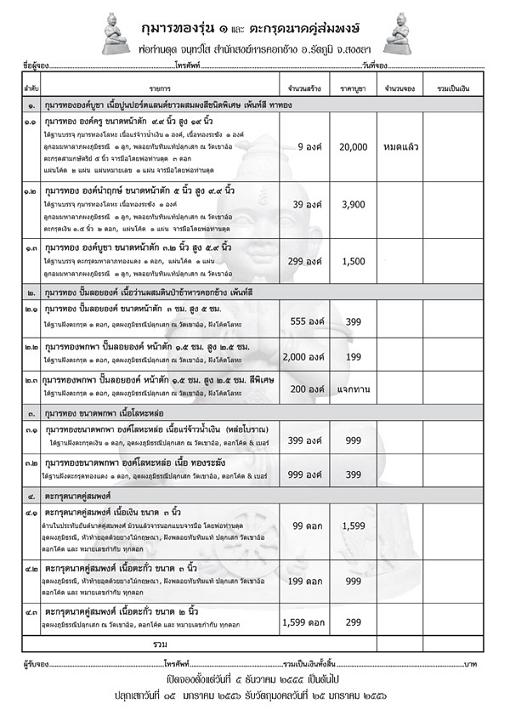 เปิดจอง กุมารทองรุ่น1 และตะกรุดนาคสมพงษ์ พ่อท่านตุด สำนักสงฆ์หารคอกช้าง รายการจองมีดังนี้ครับ