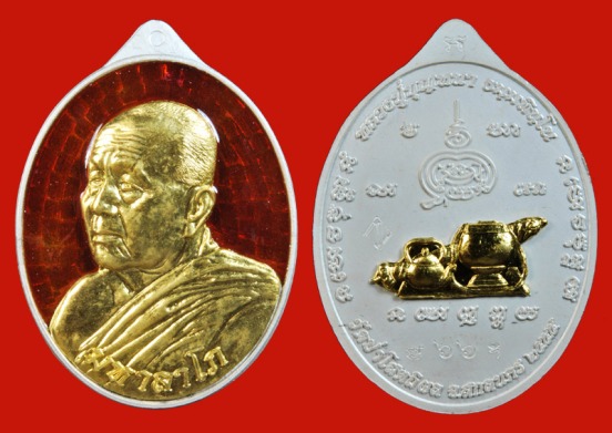 2.เหรียญเนื้อเงินลงยาแดงจีวรเหลือง เหรียญละ 4,000 มียอด 1 เหรียญ(ยังไม่ทราบหมายเลข)