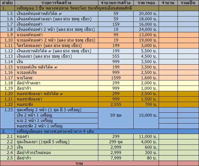 1. เนื้อไตรโลหะลงยา จำนวน 1 เหรียญ ราคาเหรียญละ 6500 บาท