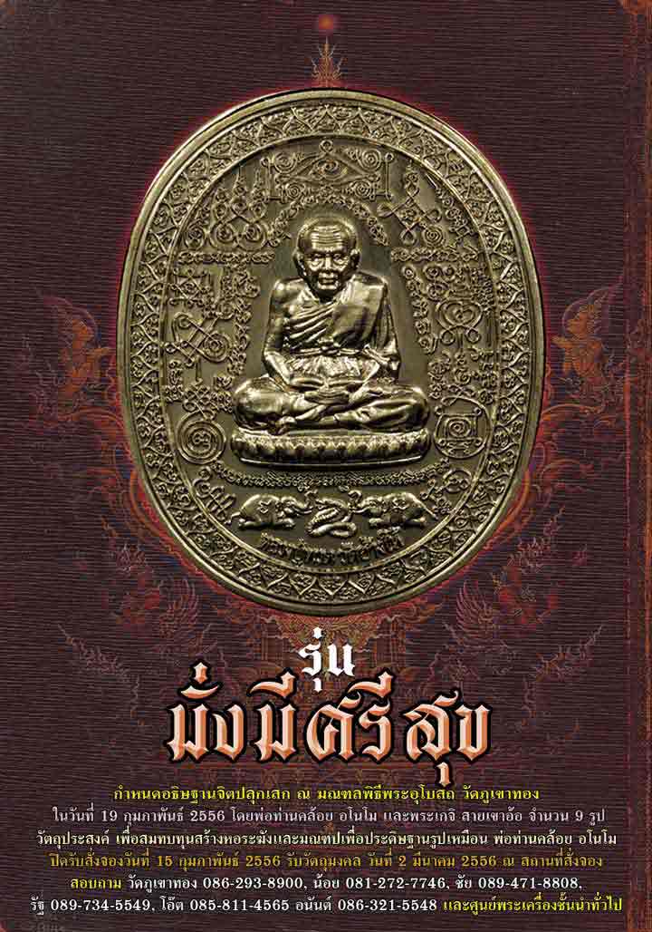 1. เหรียญปั๊ม "มั่งมีศรีสุข" พ่อท่านคล้อย อโนโม