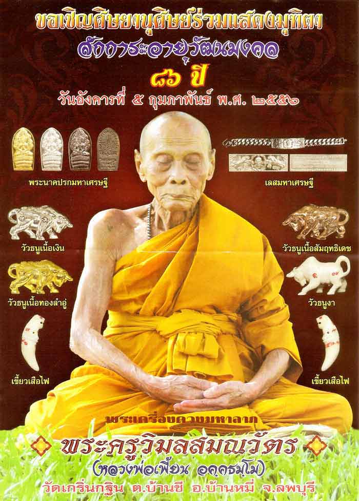 | หัวข้อกระทู้ : ๑๑๑ เชิญสั่งจองร่วมบุญฉลองอายุวัฒนมงคล หลวงพ่อเพี้ยน ครบ ๘๖ ปี วัตถุมงคลรุ่น มหาเศรษฐี ๑๑๑ |